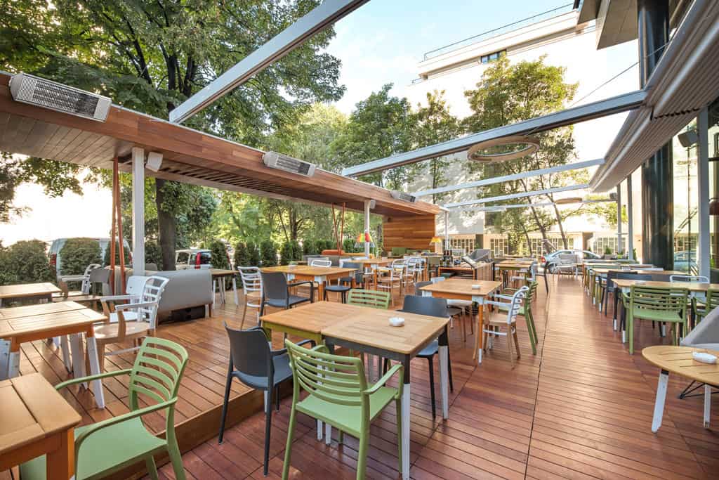 CF Series heaters can be mounted on or under pergolas, structures, retractable awnings to create cozy environments for cooler times
